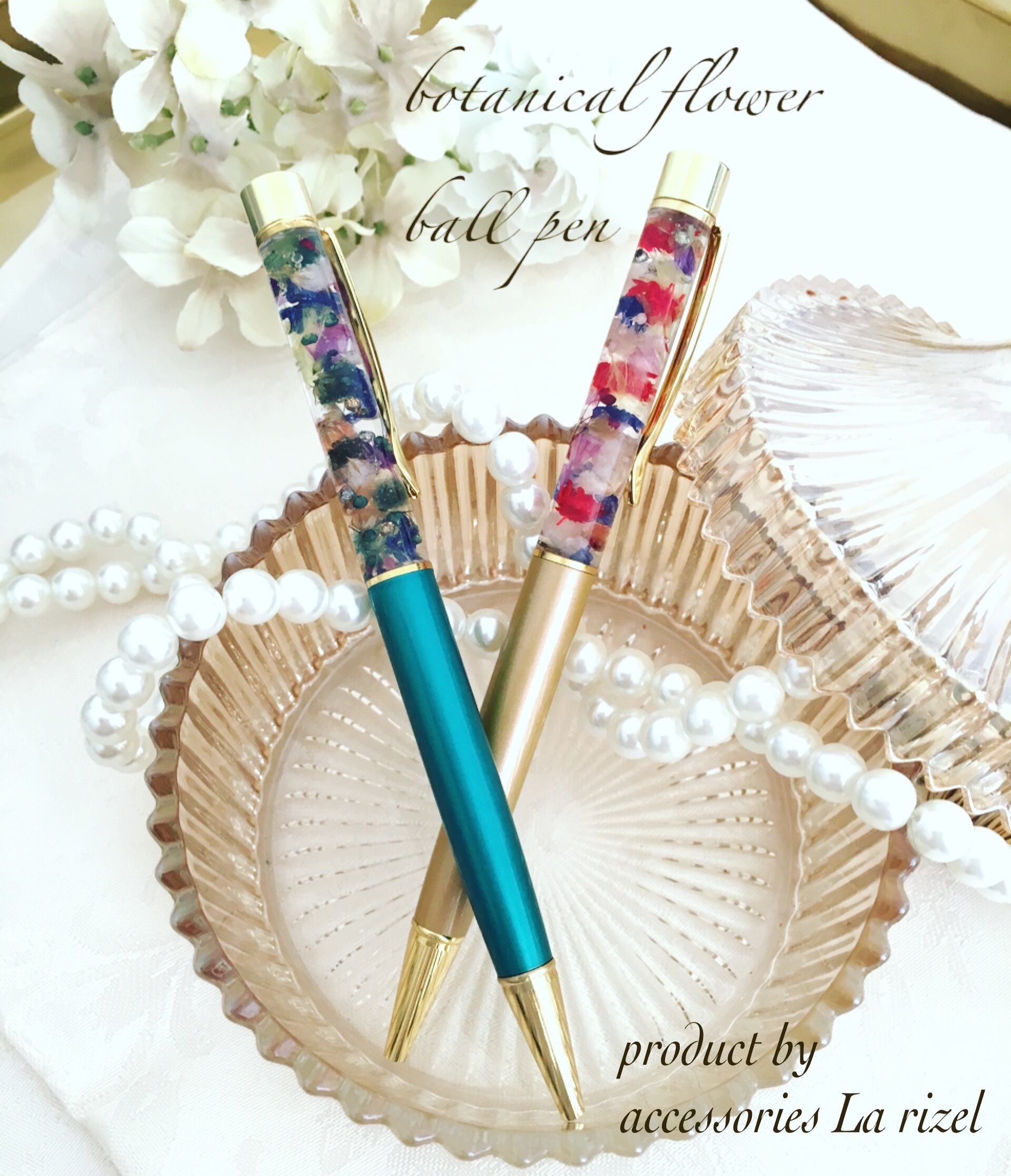 ドライフラワーを入れた、まるでミニハーバリウムがついたような可愛いボールペンです。
